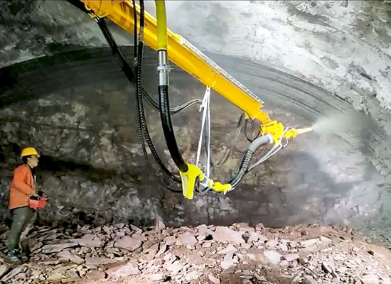 隧道濕噴機械手是智能機械臂濕噴機,采用工程底盤,四輪驅動,無線遙控操作,代替人工操作作業(yè),每小時噴射混凝土量可達30立方,噴射速度快,機械化程度高,改善了施工環(huán)境,降低了施工成本,在隧道機械化施工中應用廣泛。