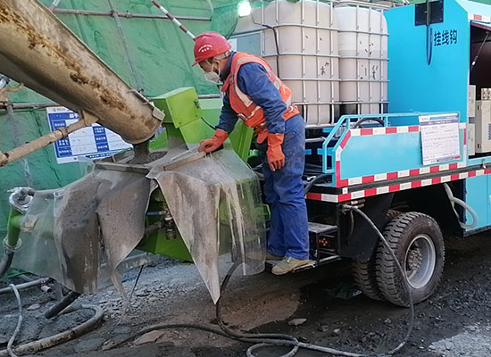 混凝土濕噴機(jī)噴射作業(yè)開始時(shí),應(yīng)先送風(fēng),后開機(jī),再給料;結(jié)束時(shí),應(yīng)待料噴完后,再關(guān)風(fēng)。向濕噴機(jī)供料應(yīng)連續(xù)均勻,機(jī)器正常運(yùn)轉(zhuǎn)時(shí),料斗內(nèi)應(yīng)保持有足夠的存料。噴射作業(yè)完畢或因故中斷噴射時(shí),必須將濕噴機(jī)和輸料管內(nèi)的積料清除干凈。